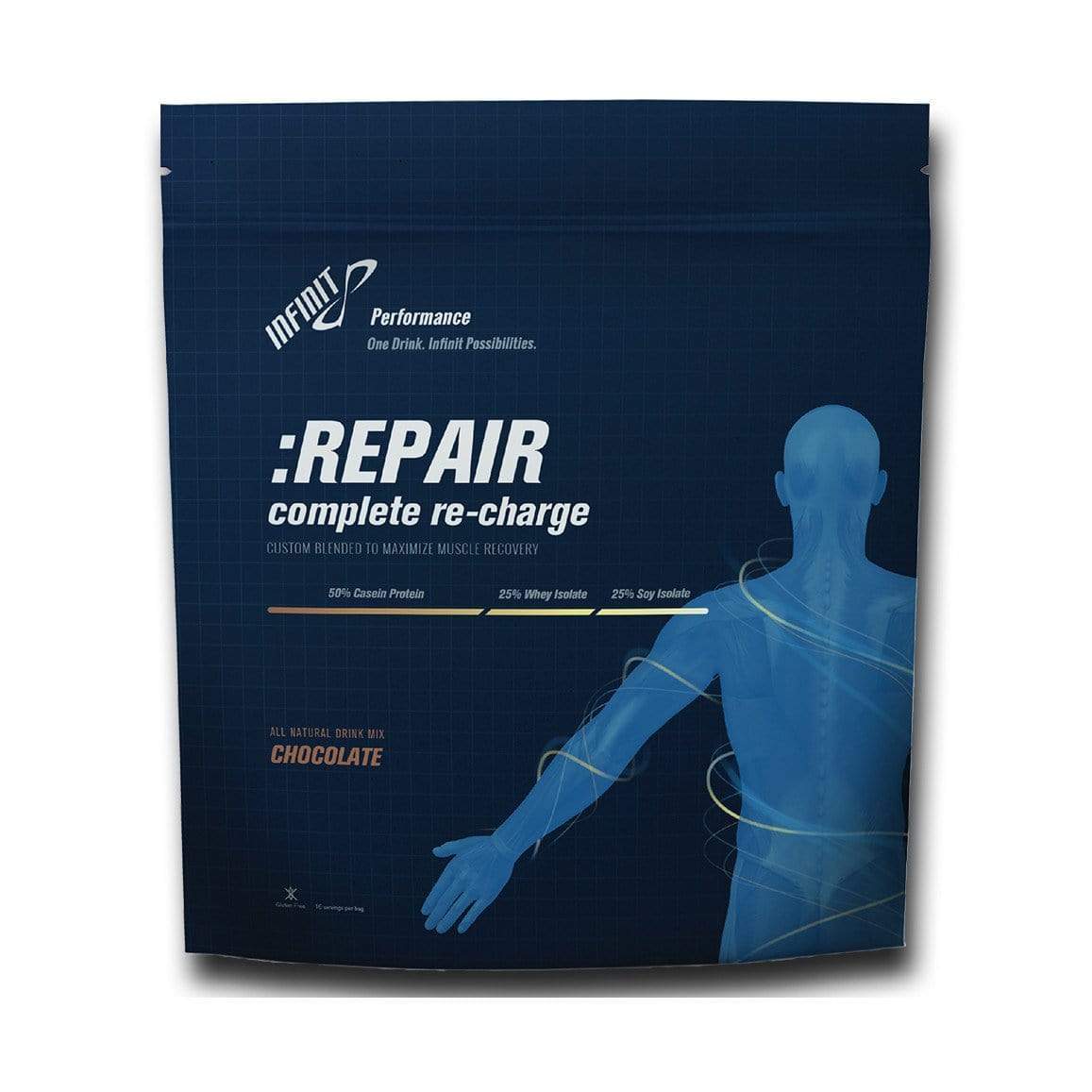 Infinit Repair Fluid Recovery is formulated with a blend of four different types of carbohydrates to replenish muscle glycogen (carbohydrate stores), which become depleted after an intense workout. This recovery drink uses a blend of fast and slow absorbing protein to maximize repair of damaged muscle tissue. The combination of BCAA’s (branched chain amino acids) gives your muscles access to crucial nutrients over the course of several hours after your workout. It also contains glutamine, an amino acid that can help repair gut tissue, which can become damaged during high intensity workouts.