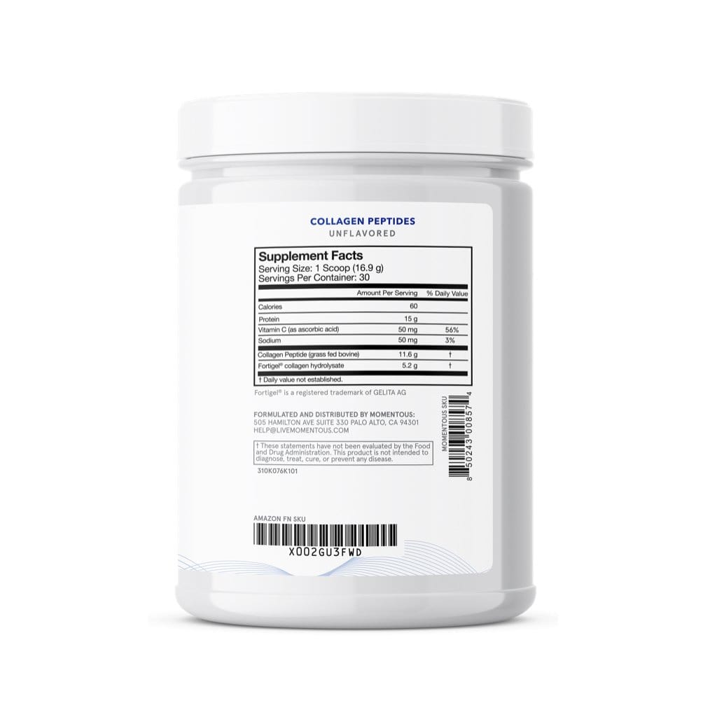 In addition to the collagen peptides and vitamin C, Momentous sets their Collagen Peptides formula apart from the rest by adding 5.2g of Fortigel. Fortigel is a clinically researched form of collagen peptides unique to Momentous that was designed and tested to promote collagen synthesis in tendons and ligaments.