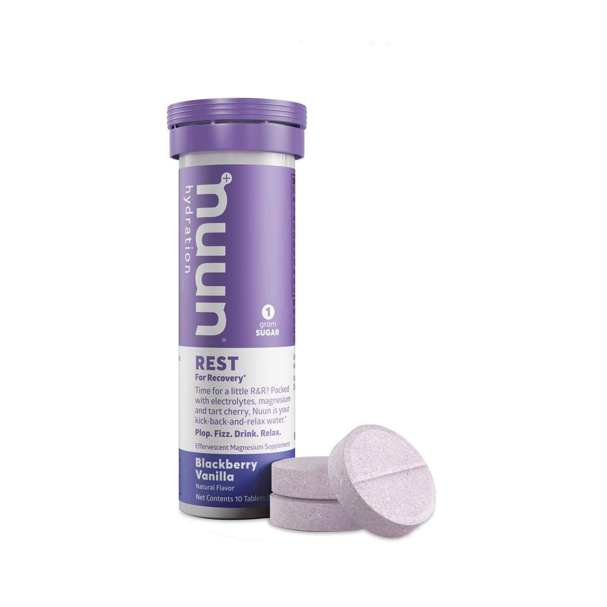 · Low in sugar: excess sugar before bed can make falling asleep and staying asleep more difficult. It can also promote inflammation and make it harder to recover. Not to worry, sweetened with natural stevia leaf extract, one Nuun Rest tablet has only 1 gram of sugar so you can enjoy the taste without the negative side effects.
