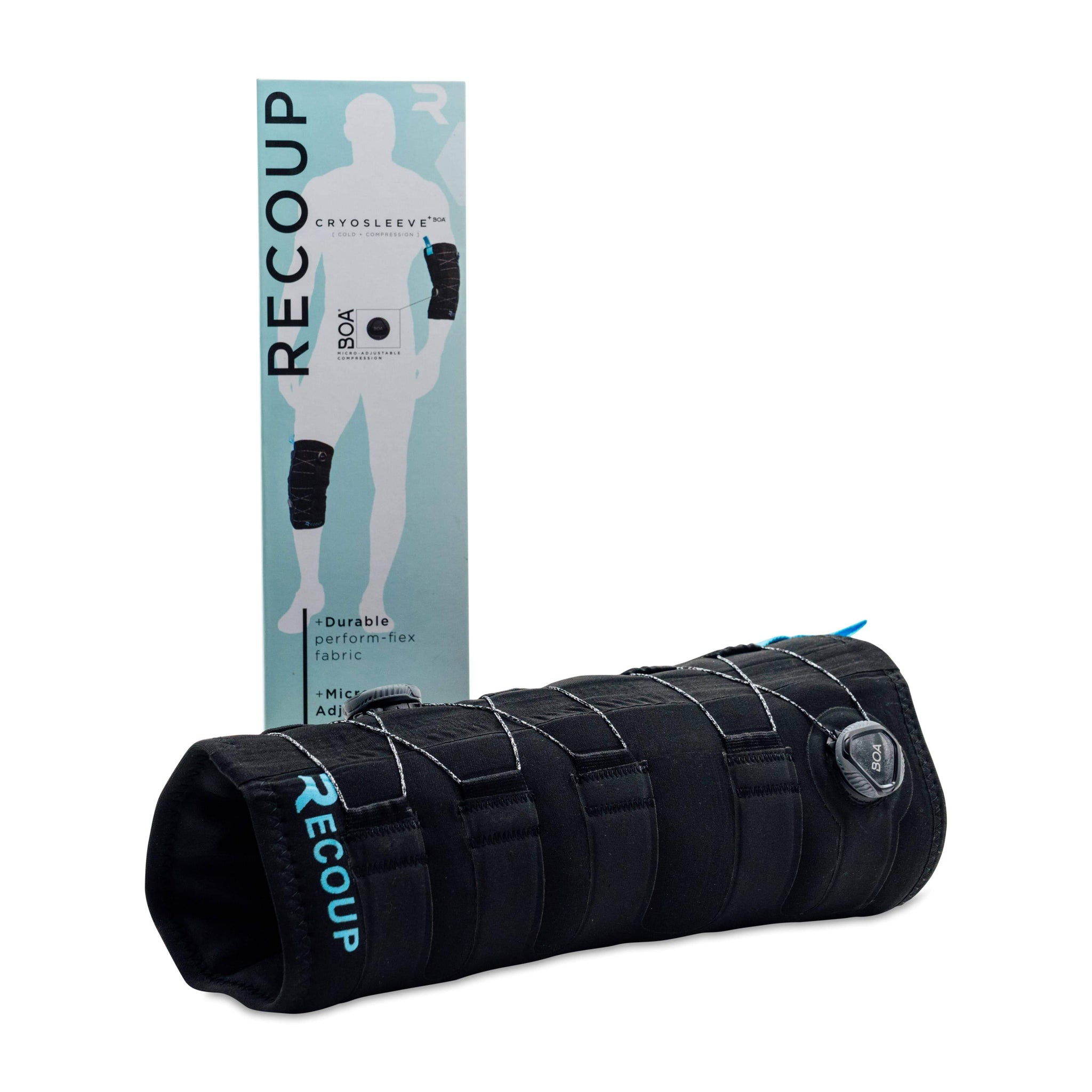 Recoup says - "The Recoup Cryosleeve combines ice + compression for up to 1 hour of cold relief. Use on multiple body parts with sizing for leg and arm. The Cryosleeve + Boa® Fit System provides micro-adjustable compression while forming to the area. Great for reducing inflammation, speeding up recovery, and general pain relief for injuries such as carpal tunnel, shin splints, golfer's elbow, knee injury, etc."
