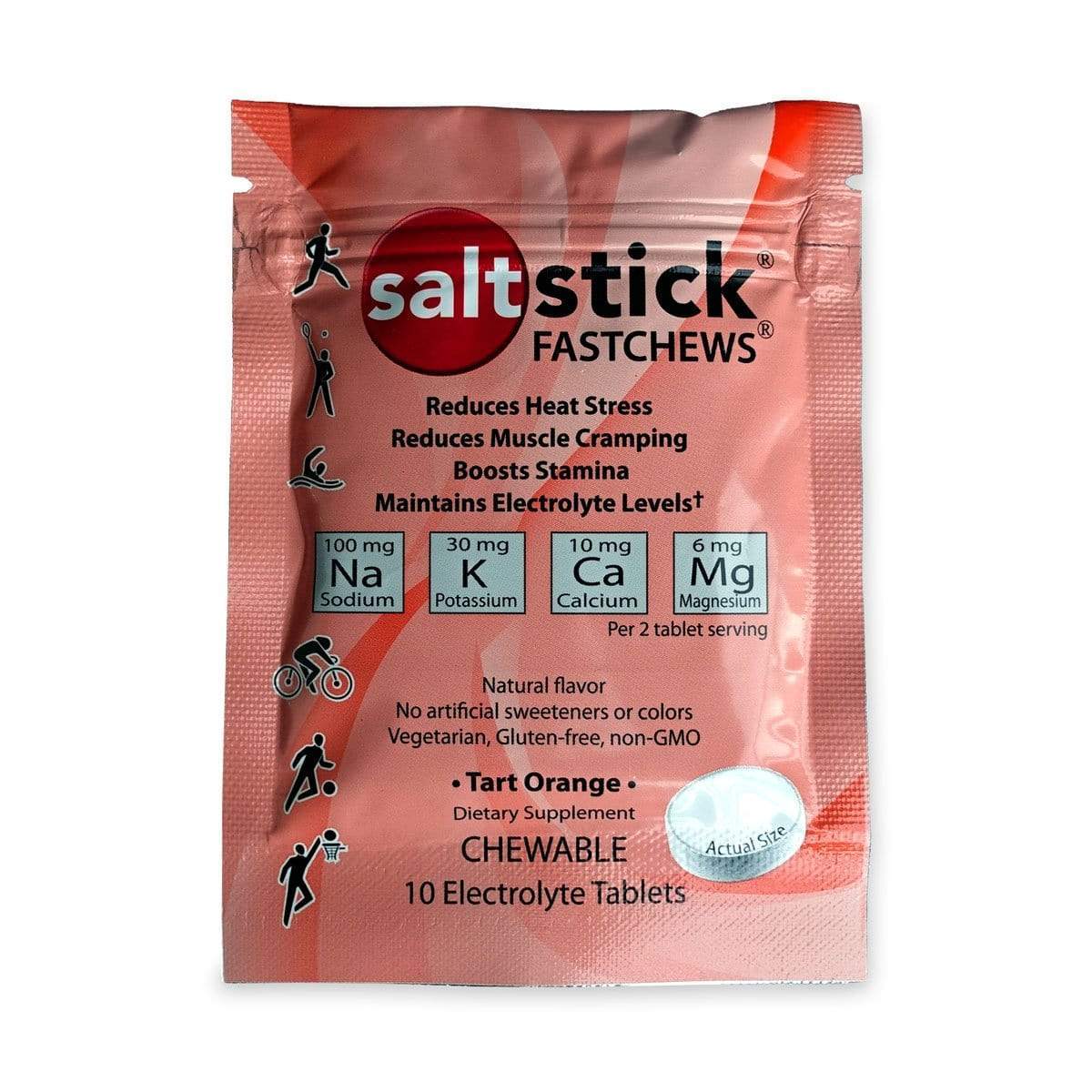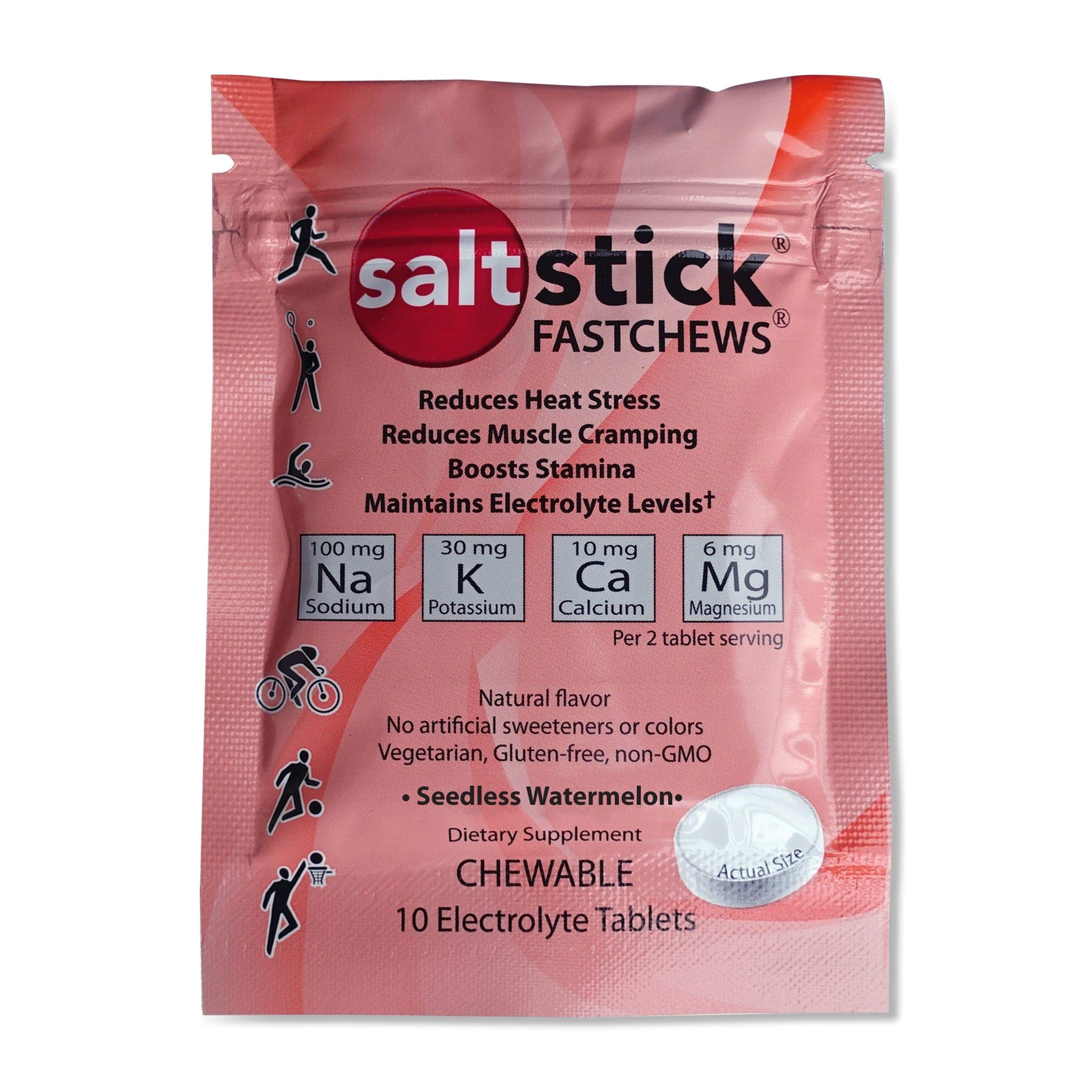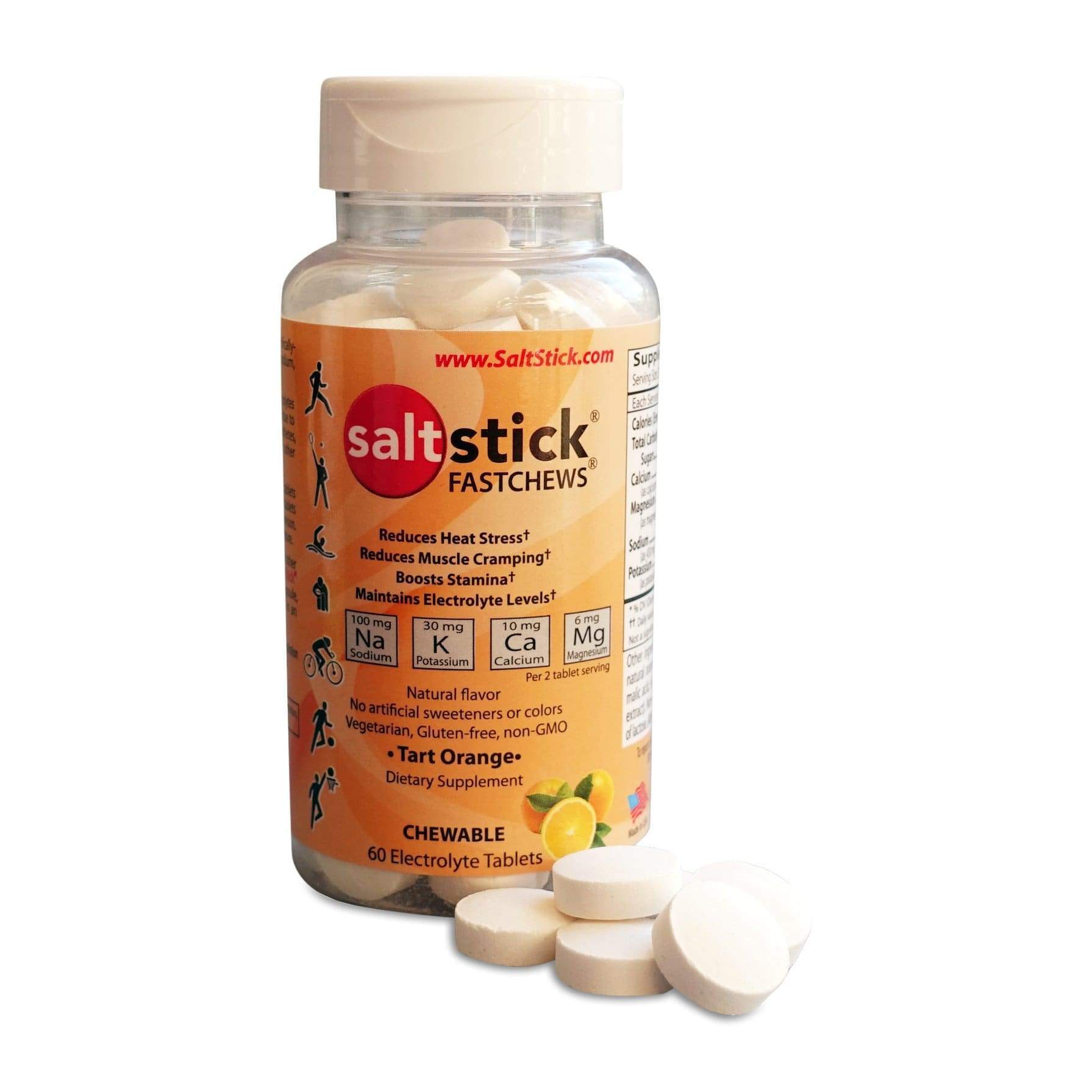 Great for sports, travel, outdoor work, or to take on hikes, these tablets will help meet your hydration needs wherever you are. SaltStick Fastchews are made with natural flavors, non-GMO and vegetarian friendly ingredients, and contain no artificial flavors or colors. They are also free from banned substances, making them a top choice of many elite athletes.