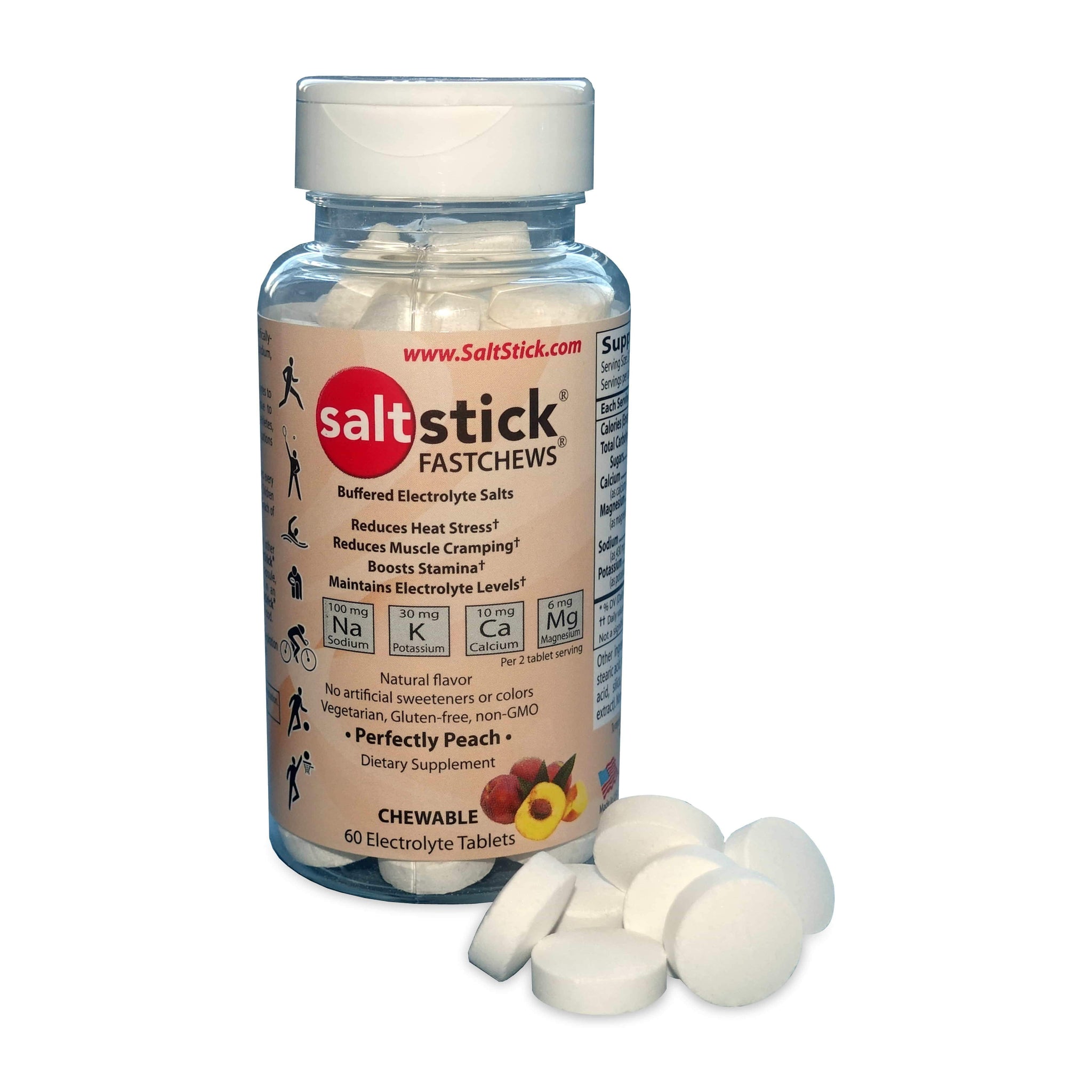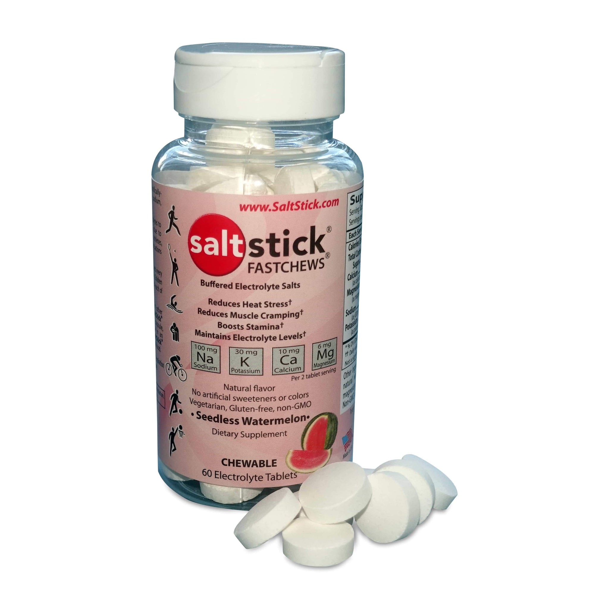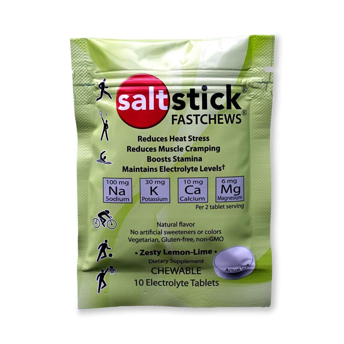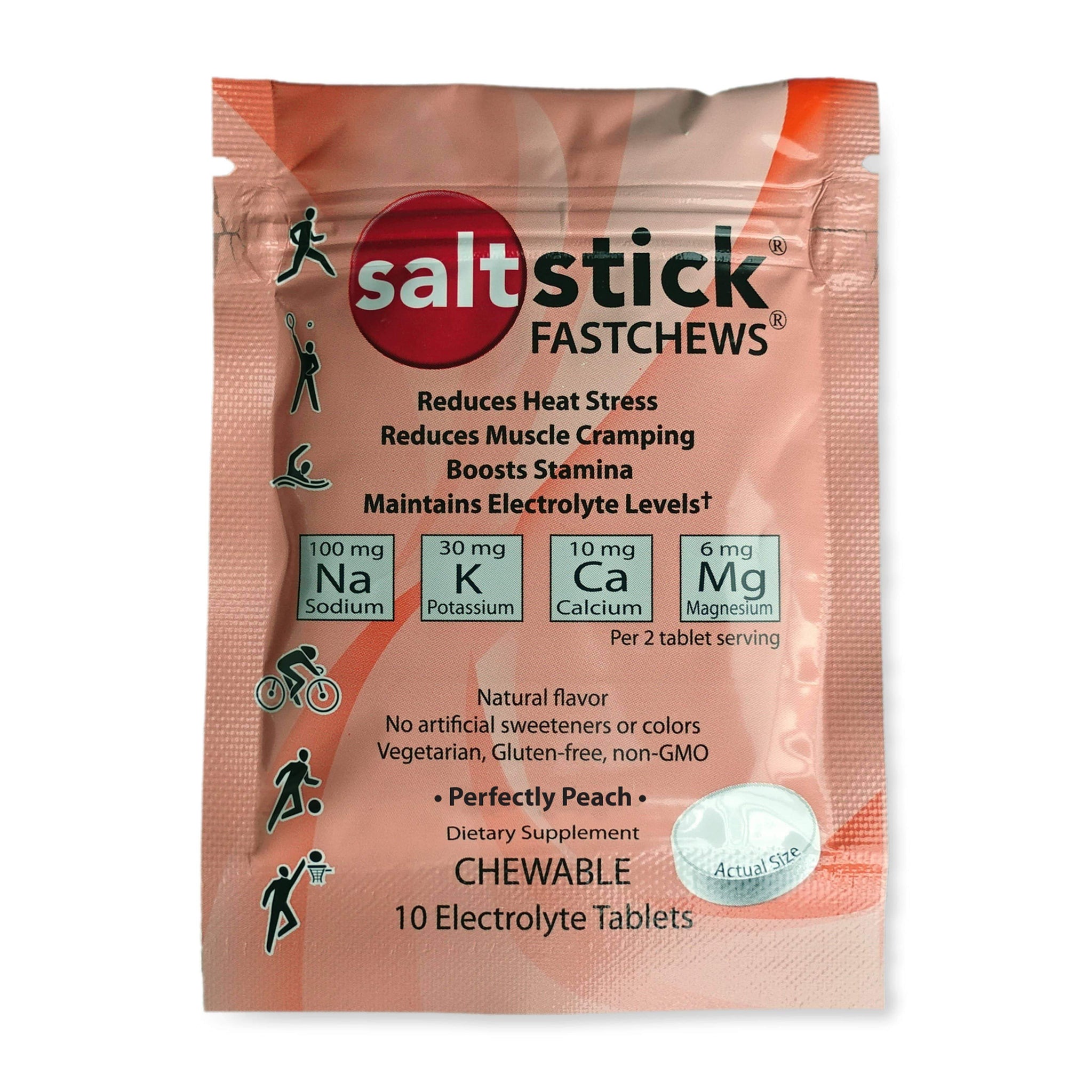Great for sports, travel, outdoor work, or to take on hikes, these tablets will help meet your hydration needs wherever you are. SaltStick Fastchews are made with natural flavors, non-GMO and vegetarian friendly ingredients, and contain no artificial flavors or colors. They are also free from banned substances, making them a top choice of many elite athletes.