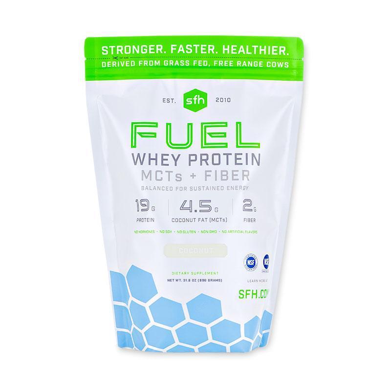 SFH Fuel is the newest addition to the SFH Whey Family. They took two great products (SFH Daily Balance & In-Race) and created one formula to use anytime of day. SFH FUEL is made for everyone and is the ultimate protein to fuel your daily needs. SFH FUEL combines non-denatured whey protein derived from the milk of grass-fed, free range cows, coconut fat (MCTs) and apple pectin (a mixture of medium glycemic carbohydrates in a matrix of natural fiber).