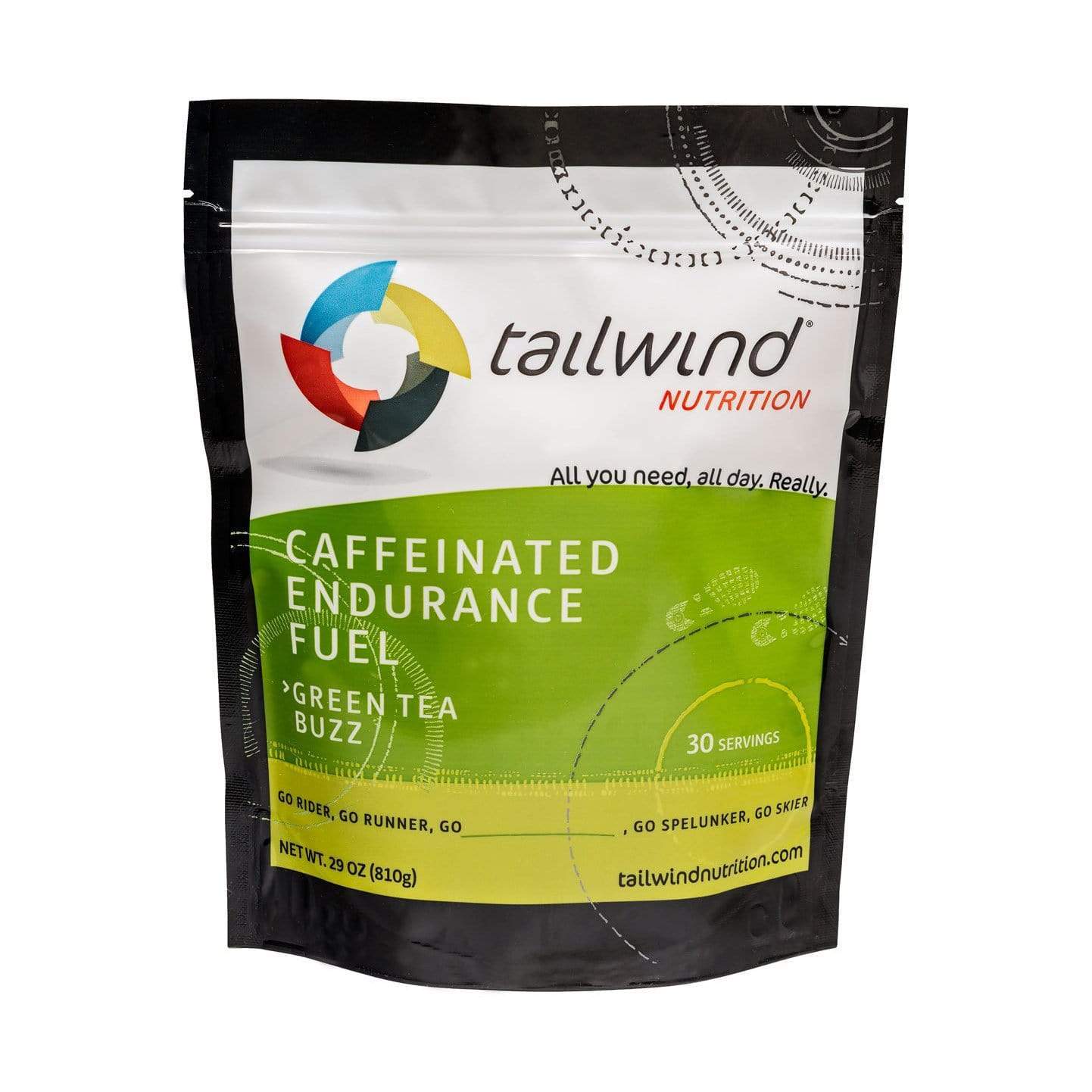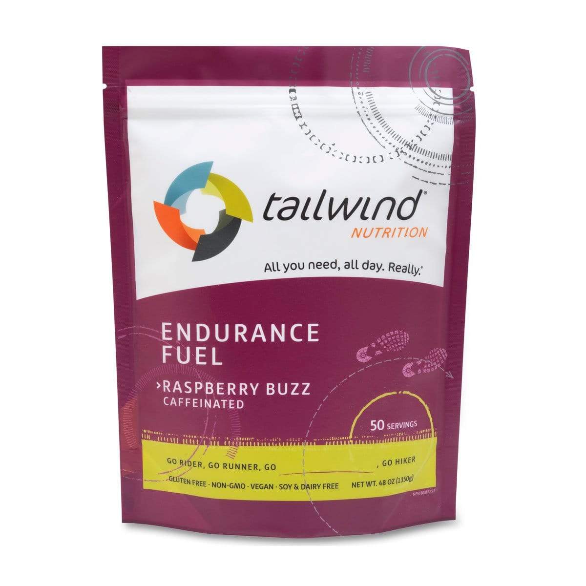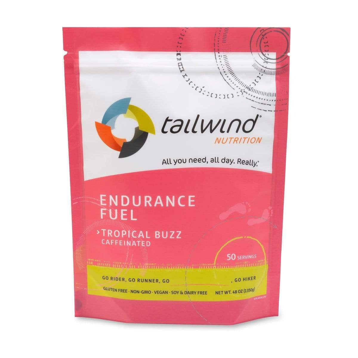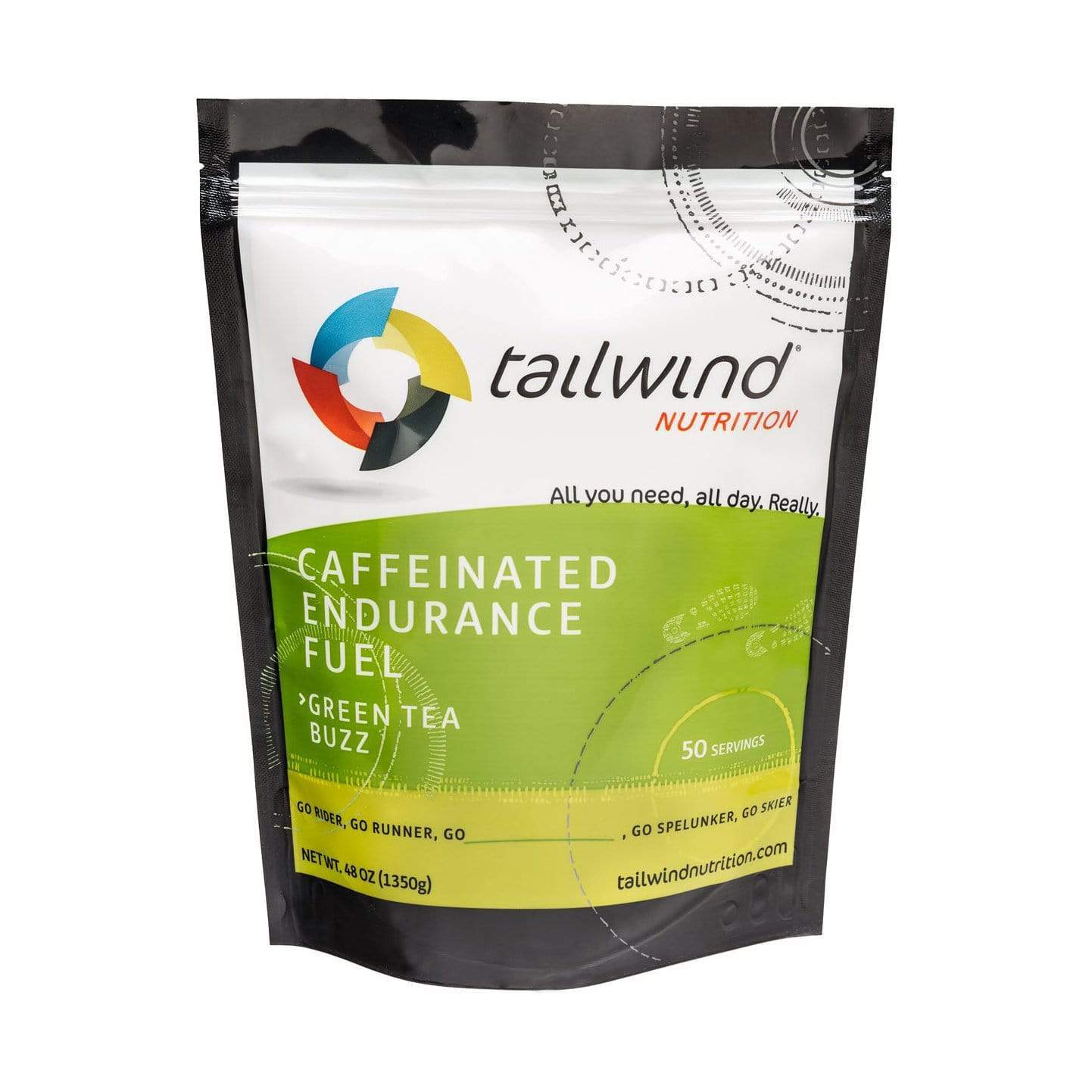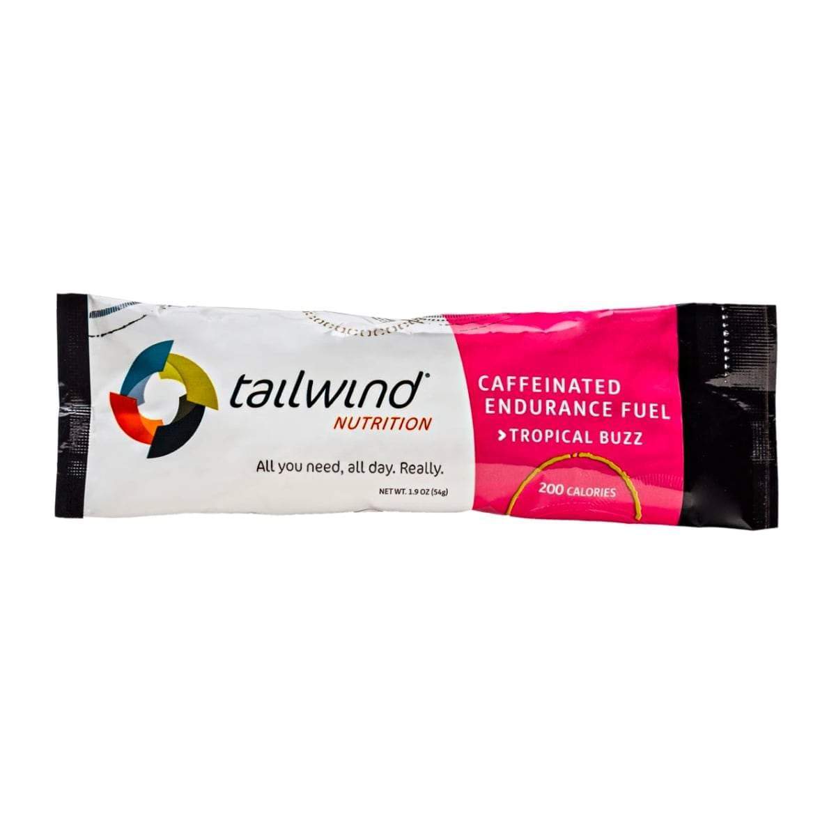 Tailwind Caffeinated Endurance Fuel meets all your calorie, hydration, and electrolyte needs just like you'd expect, plus it adds 35mg of caffeine per 100 calories. Caffeine is proven to significantly enhance high-intensity and endurance performance. Raspberry Buzz, Green Tea Buzz, and Tropical Buzz available in 50 and 30 serving bags, as well as 200 calorie stick packs.