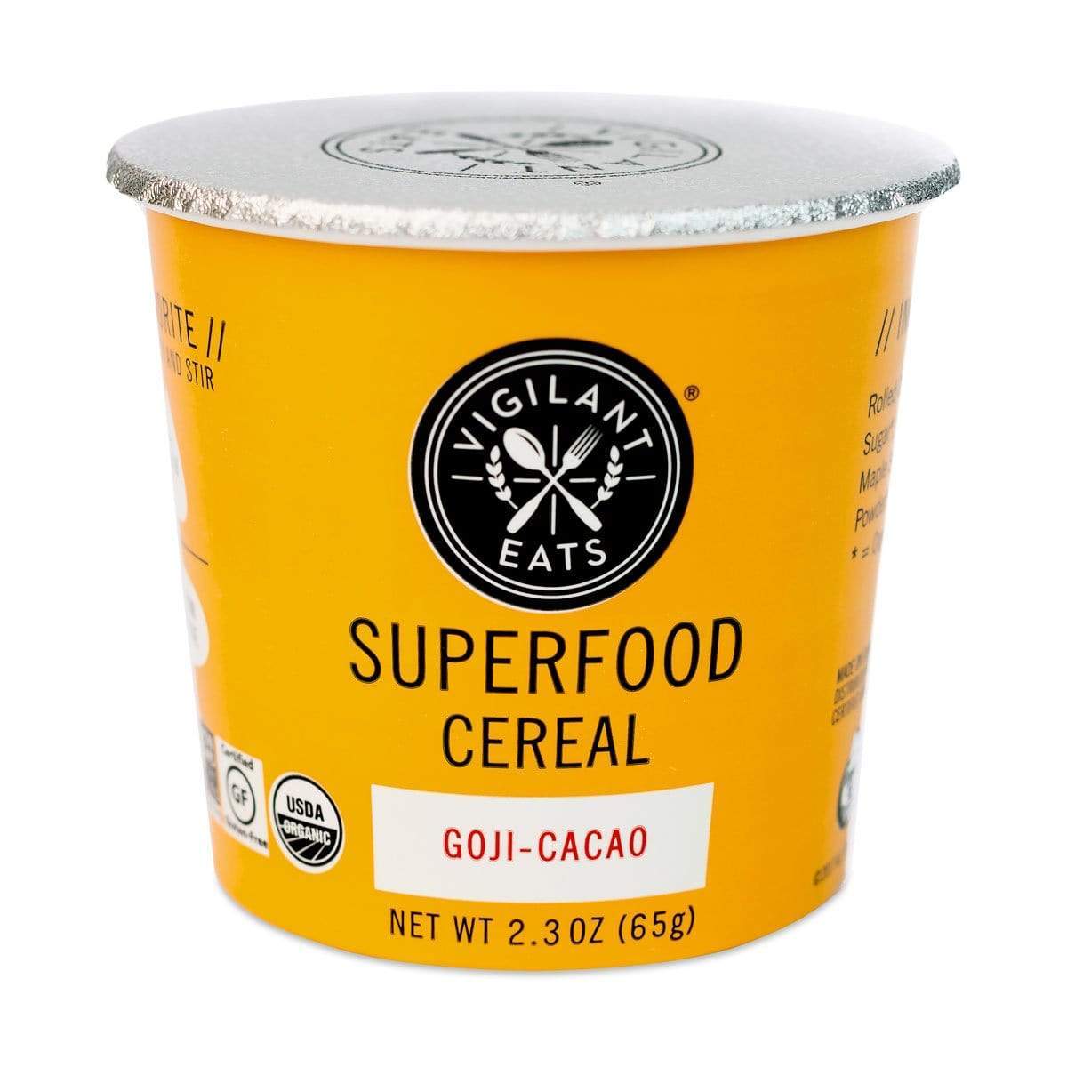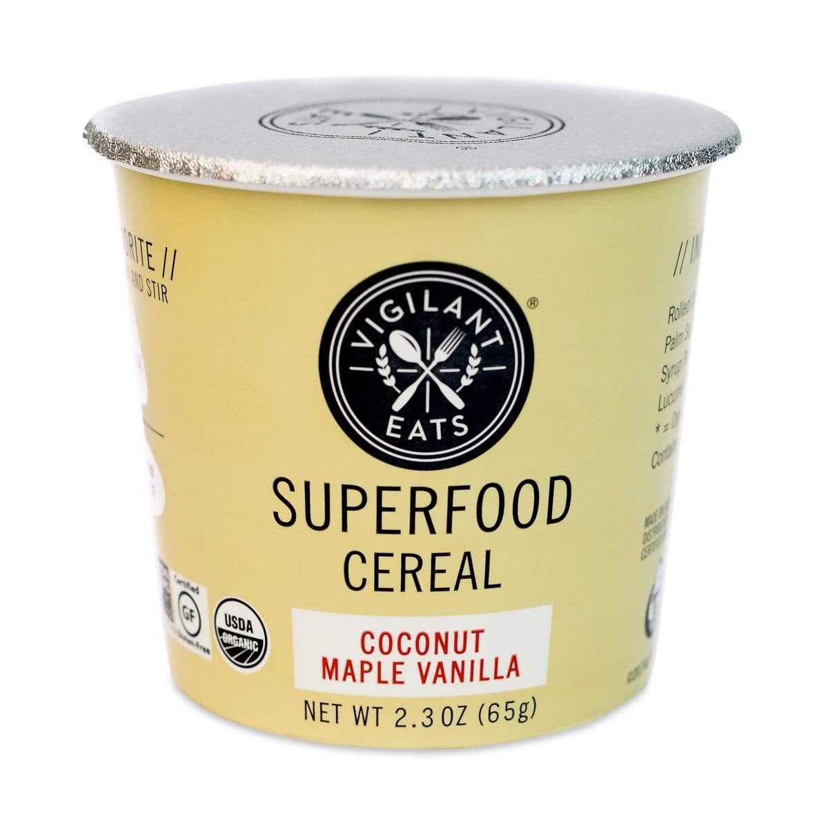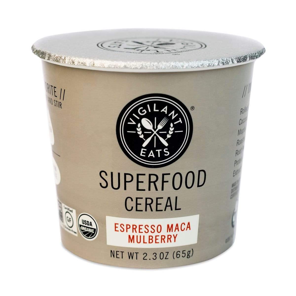 Vigilant Eats has created a perfectly portable cup of organic oat-based cereal. It's packed full of superfoods and nutritious raw ingredients. The hempmilk powder allows you to just add a liquid of your choice to create a creamy, oat-y treat. Each cup has a spoon inside, so it's the perfect on-the-go breakfast. Whether you're a cold almond milk, hot water, or lukewarm hotel-room tap water kind of oatmeal eater, this super-cereal will satisfy each of you. There is no soy, no dairy, no additives, no preservatives and no refined sugar. The sweetness comes from low-glycemic whole foods so it tastes good without spiking your blood sugar or giving you the classic crash-and-burn energy. Each bite is a delight, you might encounter delicious flakes of coconut, raw mulberries, or cacao nibs. It's a great breakfast that is nourishing, energizing and downright fun to eat.