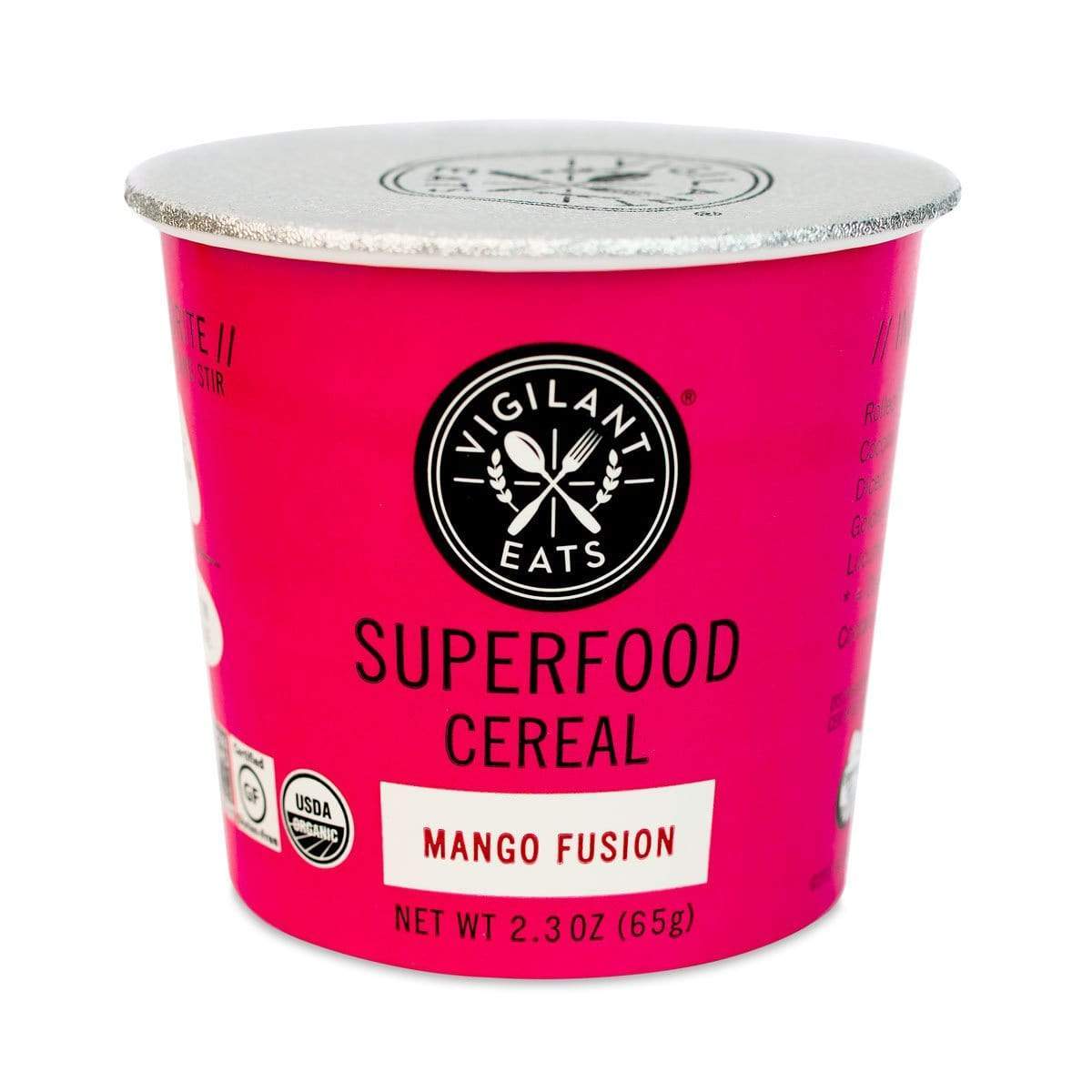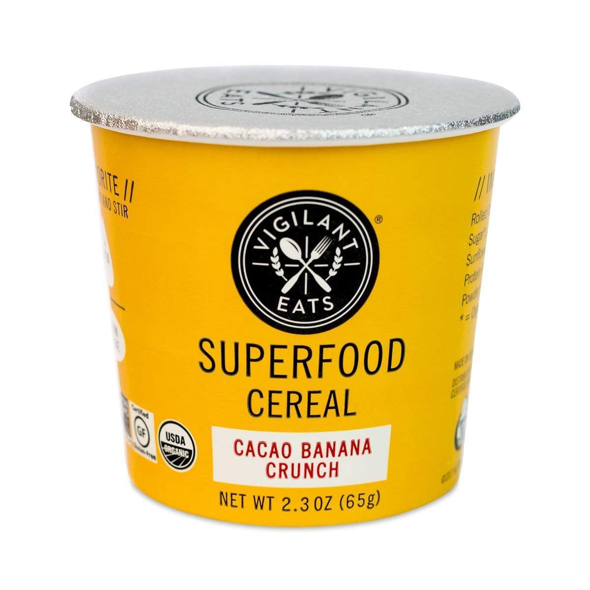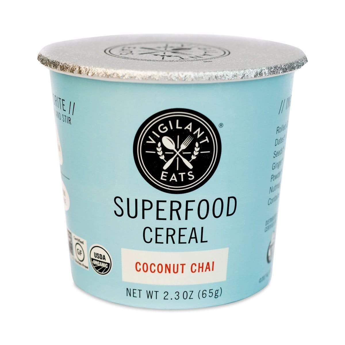 Vigilant Eats has created a perfectly portable cup of organic oat-based cereal. It's packed full of superfoods and nutritious raw ingredients. The hempmilk powder allows you to just add a liquid of your choice to create a creamy, oat-y treat. Each cup has a spoon inside, so it's the perfect on-the-go breakfast. Whether you're a cold almond milk, hot water, or lukewarm hotel-room tap water kind of oatmeal eater, this super-cereal will satisfy each of you. There is no soy, no dairy, no additives, no preservatives and no refined sugar. The sweetness comes from low-glycemic whole foods so it tastes good without spiking your blood sugar or giving you the classic crash-and-burn energy. Each bite is a delight, you might encounter delicious flakes of coconut, raw mulberries, or cacao nibs. It's a great breakfast that is nourishing, energizing and downright fun to eat.